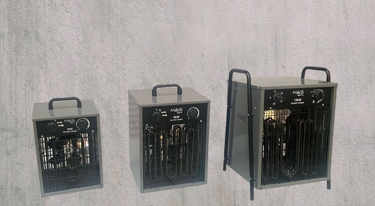 Elektrikli ısıtıcılari 3 KW, 9 KW, 15 KW seçenekleri mevcuttur.Endüstriyel alanlarda ve inşaatlarda kullanılabilir.